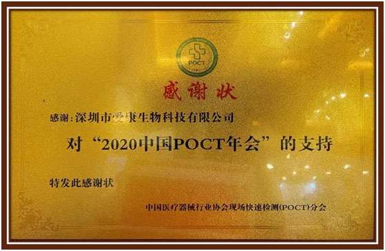 作为POCT行业的一员,开云官方网站在线登录-开云(中国)积极参加了此次大会。会议期间,中国医疗器械行业学会现场快速检测(POCT)分会主任委员、大会主席康熙雄教授和大会名誉主席府伟灵教授莅临开云官方网站在线登录-开云(中国)展台指导工作,并颁发了“对2020中国POCT年会的支持”感谢状。